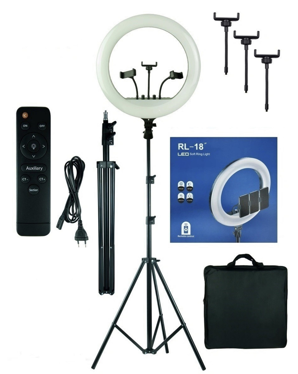 Кільцева LED лампа RL-18 на 55Вт. (Діаметр – 45см.) – штатив 210 см. + 3 шт. тримача + пульт + сумка-чохол